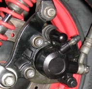走れなくなりました。ブレーキディスク、ピストンキャリパーをはずして清掃。ブレーキオイル交換をしたので